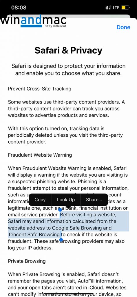 一場反送中運動,令不少香港人終於開始識得用VPN,關心網上私隱。蘋果iOS原被認為最安全的操作系統,但隨著不停向中共跪低,令人擔心其安全性,就算是在香港也受有關跪低事件影響。網站reclaimthenet.org報道指出,其實由iOS 12.2測試版開始,蘋果就不斷向大陸騰訊傳送瀏覽記錄,用家就算安裝其他瀏覽器或VPN,都未必能作出保護。報道指,原來在iOS系統設定中Safari有一項,預設會自動啟動網站安全檢查Fraudulent Website Warning,在當中有一項條款,寫明會向大陸騰訊傳送IP等私隱資料,以便成功作出檢查。據稱,要成功檢查用戶瀏覽的網站是否安全,大陸騰訊必然要知道用家正在瀏覽那一個網站。