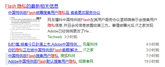 没想到,在正式宣布其"死刑"之后一年,Flash 在国内却以这样一种方式成为热议话题。Adobe 近期与国内一家公司达成合作,为国内用户提供特供版Flash,并且在其隐私声明中明确表示可能会收集用户信息,有意思的是在媒体曝光之后,很快该公司又重新修改了隐私声明。